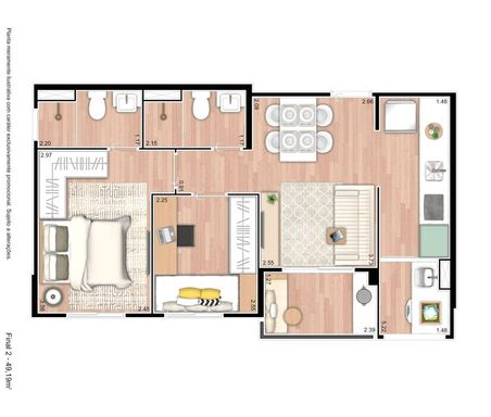 Privativa: 49,190 m2