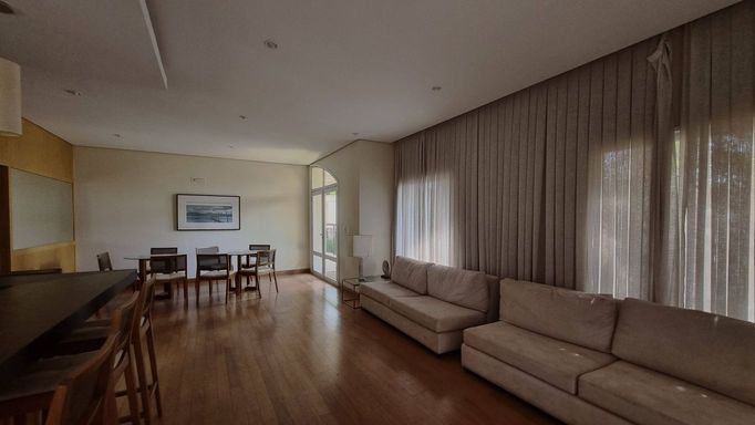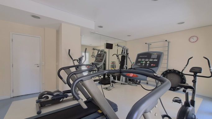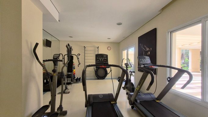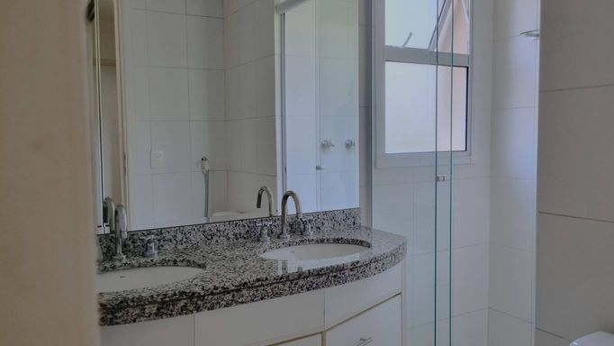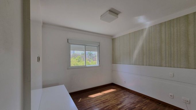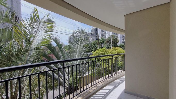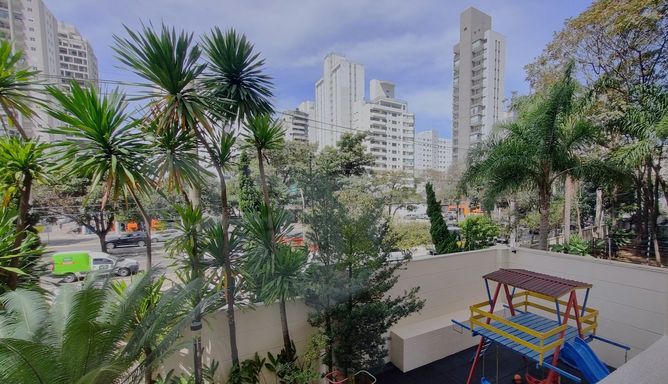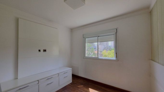 O “apê”, situado no primeiro andar, reúne bom gosto, espaços generosos, luminosidade, e a possibilidade de apreciar de perto as copas das árvores plantadas na calçada. São 3 quartos (1 suíte); sala de estar, de TV e de jantar integradas com a varanda com churrasqueira; lavabo e banheiro social; cozinha bem montada, área de serviço com lavanderia, despensa e banheiro de apoio; armários planejados em todos os ambientes, mais 2 vagas determinadas de garagem.