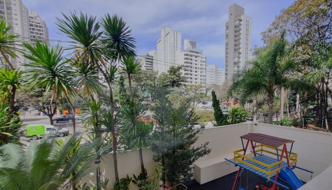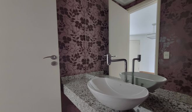 O “apê”, situado no primeiro andar, reúne bom gosto, espaços generosos, luminosidade, e a possibilidade de apreciar de perto as copas das árvores plantadas na calçada. São 3 quartos (1 suíte); sala de estar, de TV e de jantar integradas com a varanda com churrasqueira; lavabo e banheiro social; cozinha bem montada, área de serviço com lavanderia, despensa e banheiro de apoio; armários planejados em todos os ambientes, mais 2 vagas determinadas de garagem.