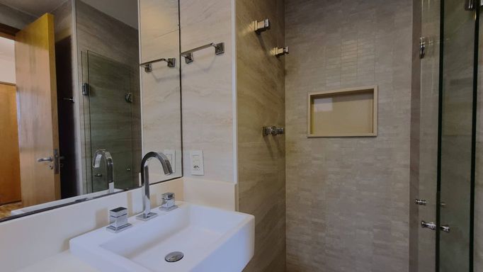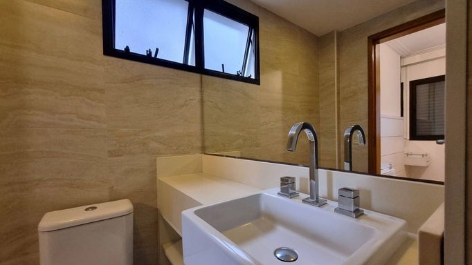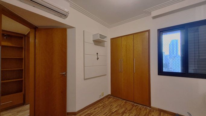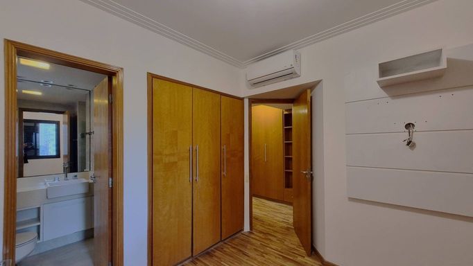 O “apê”, situado no décimo andar, reúne espaços generosos, luminosidade, e ar-condicionado novos. São 3 quartos (1 suíte); sala de estar, de TV e de jantar integradas com piso de madeira e sacada; lavabo e banheiro social; cozinha bem montada, área de serviço com lavanderia, quarto e banheiro de apoio; armários planejados em todos os ambientes, mais 2 vagas determinadas de garagem.