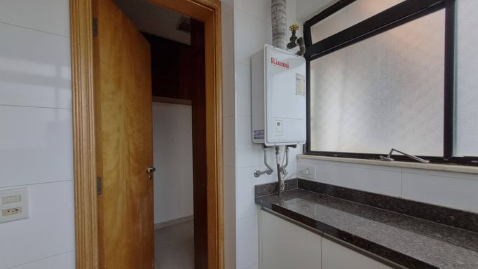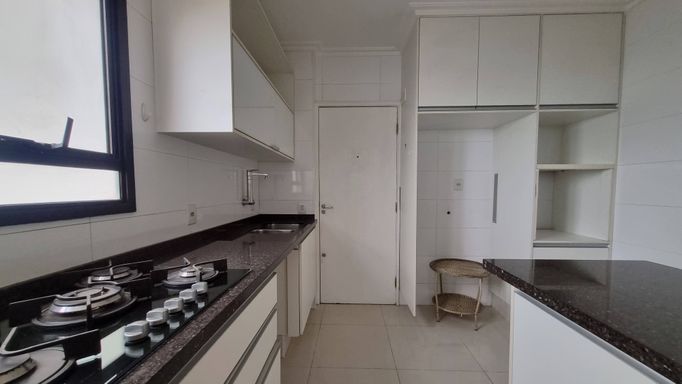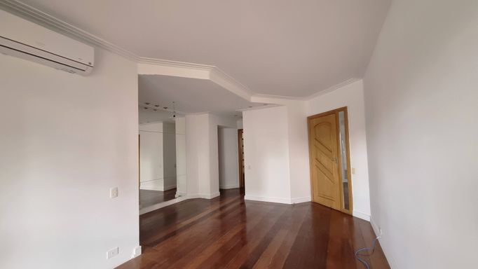 O “apê”, situado no décimo andar, reúne espaços generosos, luminosidade, e ar-condicionado novos. São 3 quartos (1 suíte); sala de estar, de TV e de jantar integradas com piso de madeira e sacada; lavabo e banheiro social; cozinha bem montada, área de serviço com lavanderia, quarto e banheiro de apoio; armários planejados em todos os ambientes, mais 2 vagas determinadas de garagem.
