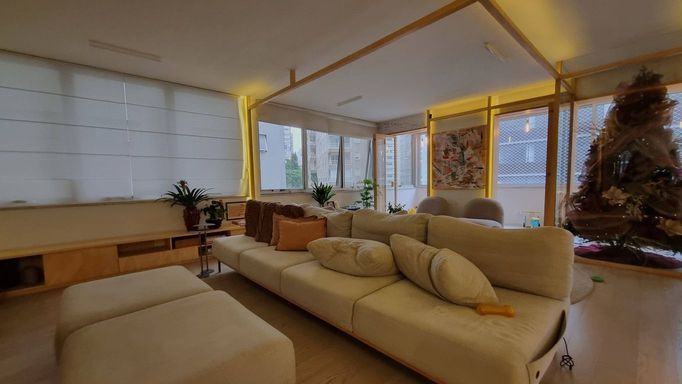 Este apartamento parece uma casa suspensa. É aconchegante, pelo que oferece de espaços diversos, arejados e personalizados; e recebeu, em 2021, o Prêmio Building of The Year concedido pelo Portal Internacional Archdaily, o mais respeitado do segmento.