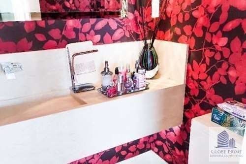 Varanda gourmet com churrasqueira à gás com uso de pedras vulcânicas (sem cheiro e acendimento imediato), acesso ao apartamento privativo, vista lateral totalmente aberta e sem vizinhos com muita privacidade, persianas automatizadas, som ambiente, TVs em todos os ambientes, móveis Breton, Brentwood, Florense.