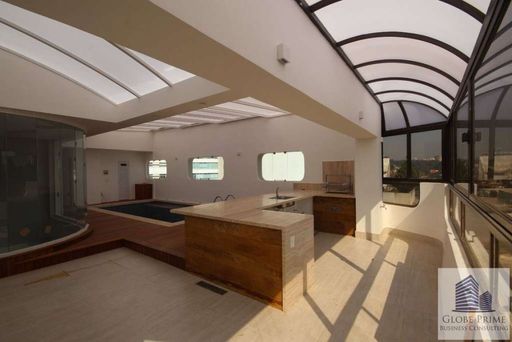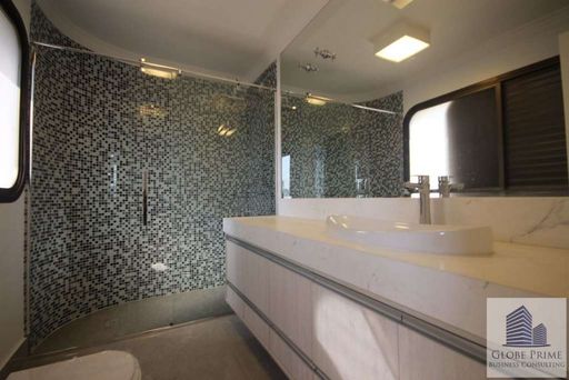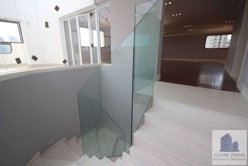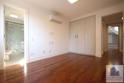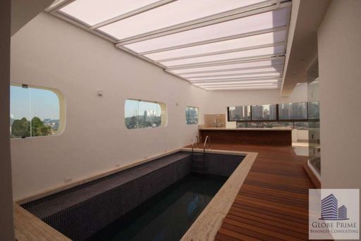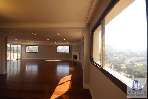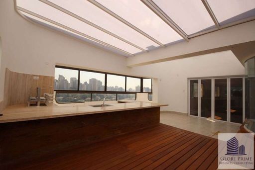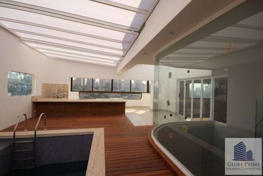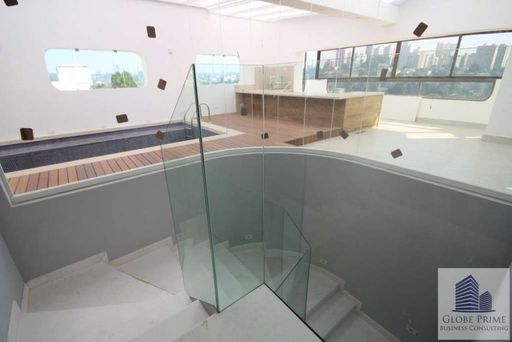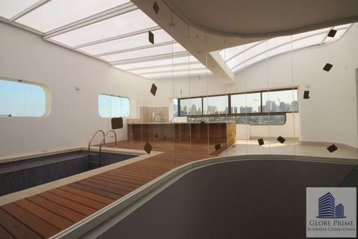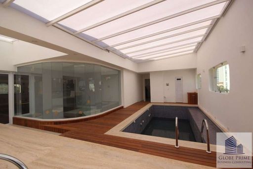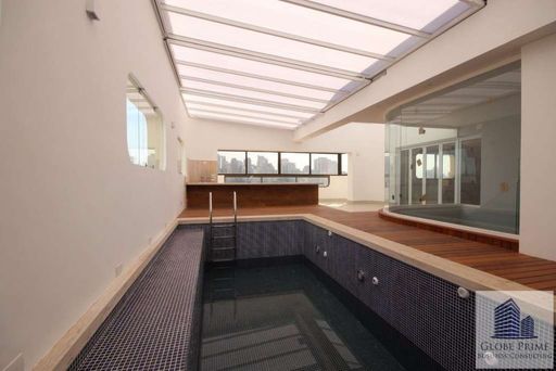 Cobertura Duplex453,13 m2 de área útil4 vagas de garagemAndar inferior: 4 suítes, sendo uma com closetEscritórioAdega climatizadaÁrea de serviço para passar roupasQuarto e banho de empregadaÁrea técnica da piscinaEscada de acesso ao piso superiorAndar superior:LivingSala de jantarLavaboCozinhaÁrea de piscina com cozinha gourmetSauna úmidaSanitárioPiscina aquecida com teto retrátil Área de serviços para a lavagem de roupasQuarto e banho de empregadosEquipamentos: ar condicionado nas suítes, armários embutidos.