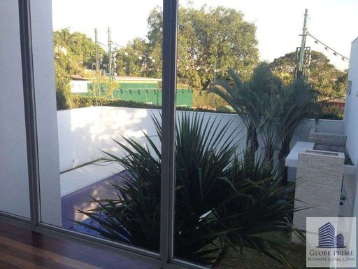 Ruff top, escada e hall em mármore navona com lindo terraço panorâmico em madeira nobre Ipe com skyline para os jardins.