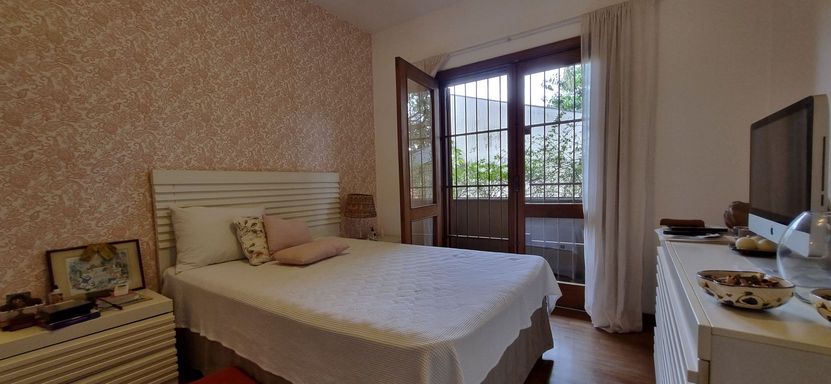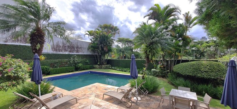 A casa da Rua das Barcas exala distintos cuidados: os jardins impecáveis; as salas de estar, de jantar e de TV com espaços generosos e iluminados; as quatro suítes amplas; o salão de jogos personalizado; a área gourmet charmosa com churrasqueira; a varanda com vista excepcional, e a piscina azul anil tendo ao redor um gramado irretocável.